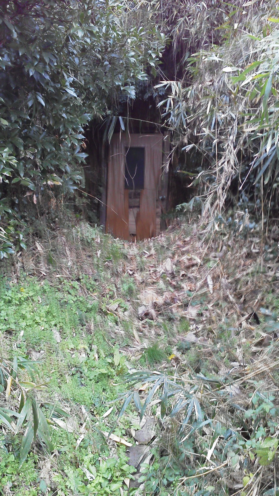 ▼土と藪で隠蔽されている。