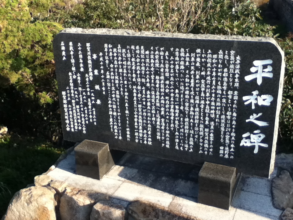 ▼橋のたもとにある平和の碑