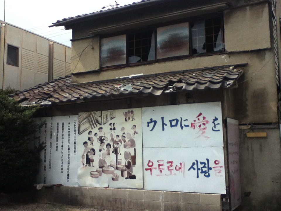 随所(個人ブログやフリーライターの記事など)で、ウトロの朝鮮人(当時は日本国籍)は「京都飛行場建設のために無理やり連れてこられた。」という話を耳にしますが、これは誤りで、元々こちらには渡日した朝鮮人労働者が住んでおり、その人たちが飛行場建設に従事したわけです。その後、飛行場建設に従事する朝鮮人の作業員が逐次増員されていき、最終的に千三百人前後にまでなったと言われています。終戦後、突然日本国籍を剥奪され、途方に暮れ、取り残された人達は、度重なる国や地方自治体との紛糾を経て今日に至りました。