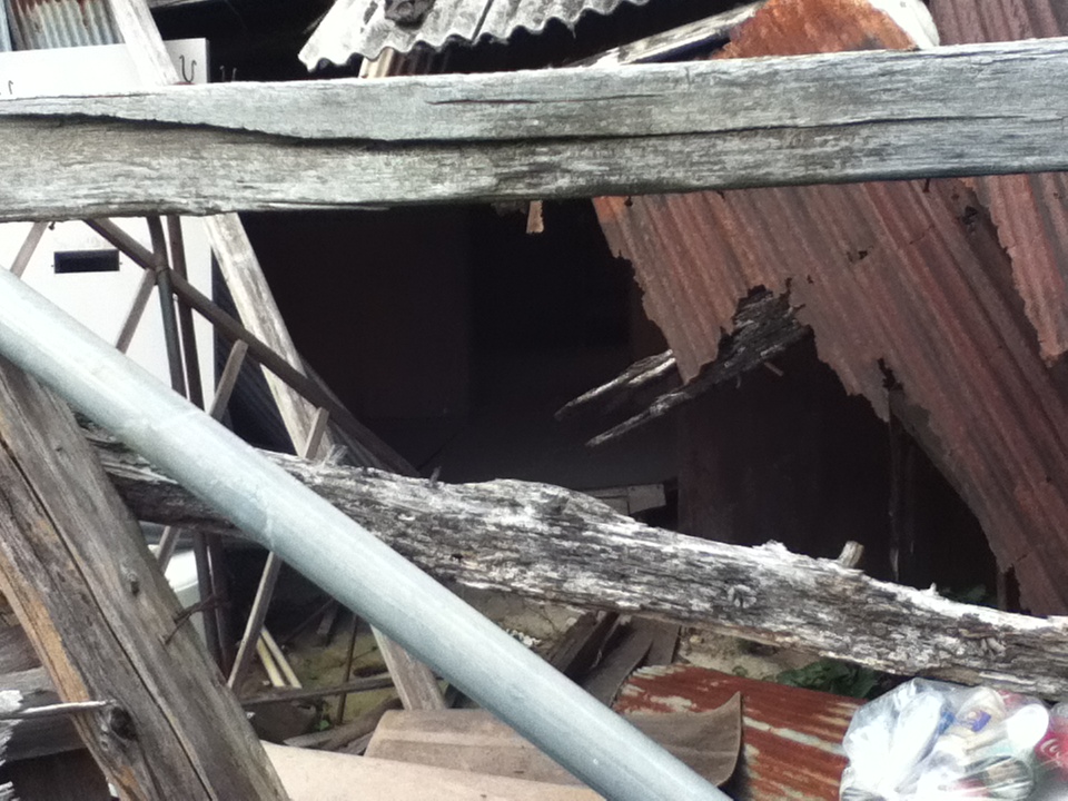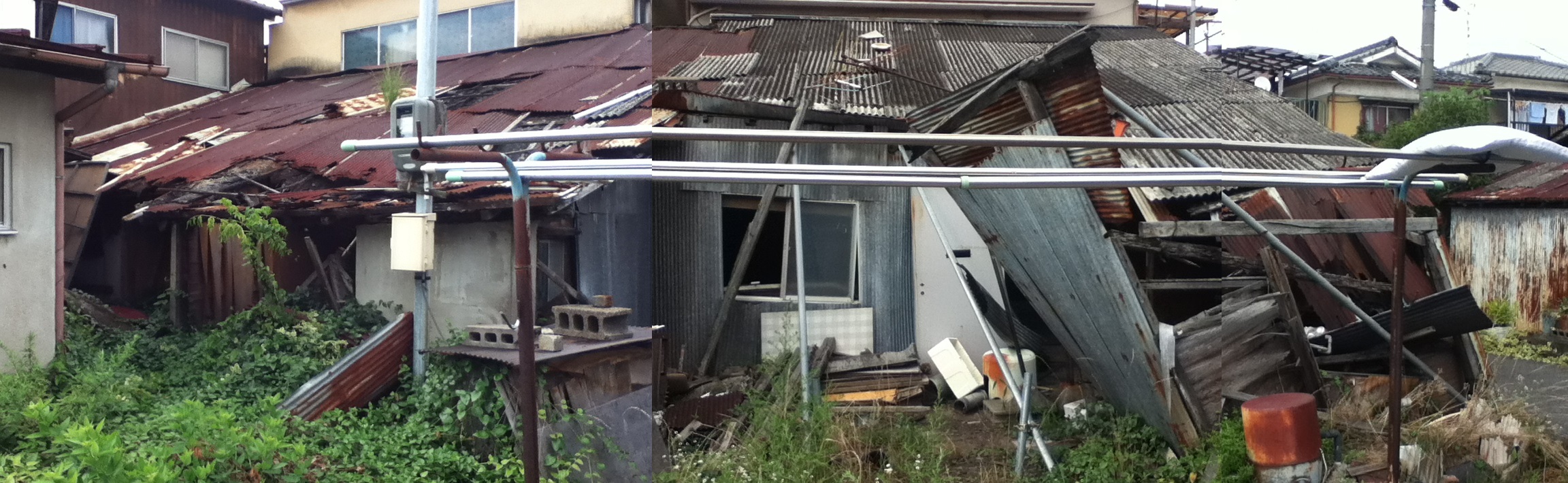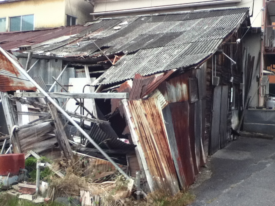 ▼ウトロ地区における京都飛行場時代の唯一の遺構「飯場(はんば)」です。第二期公的住宅完成までに解体される予定です。
