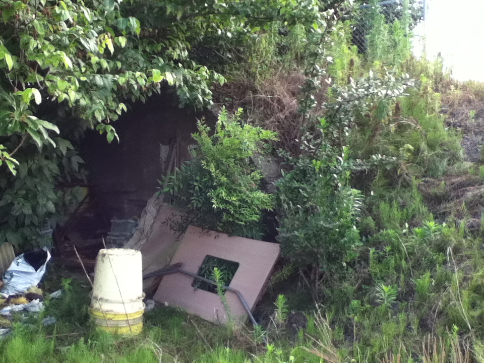 ▼斜面に残る防空壕(後述)