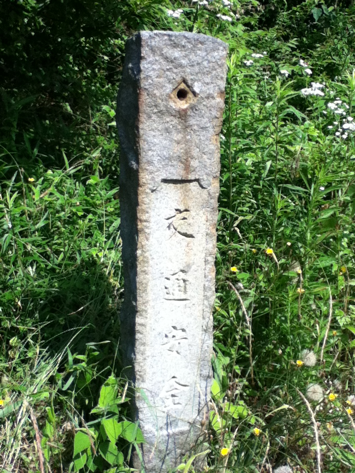 石柱が立っていますが、交通安全の文字だけ新しく彫られたようです。